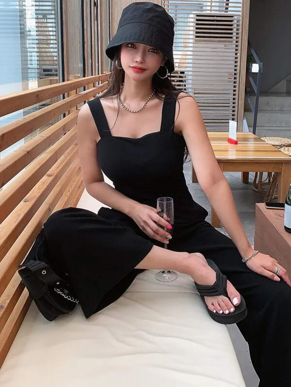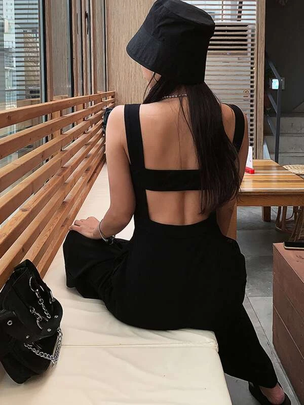 Solid Cut Out Back Wide Straps