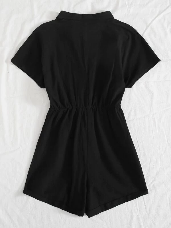 Eilly Bazar Button Front Belted Shirt Romper