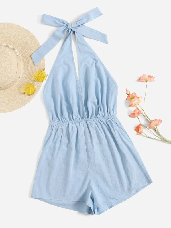 Open Back Halter Romper