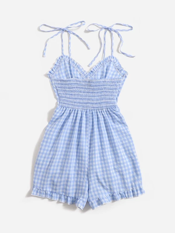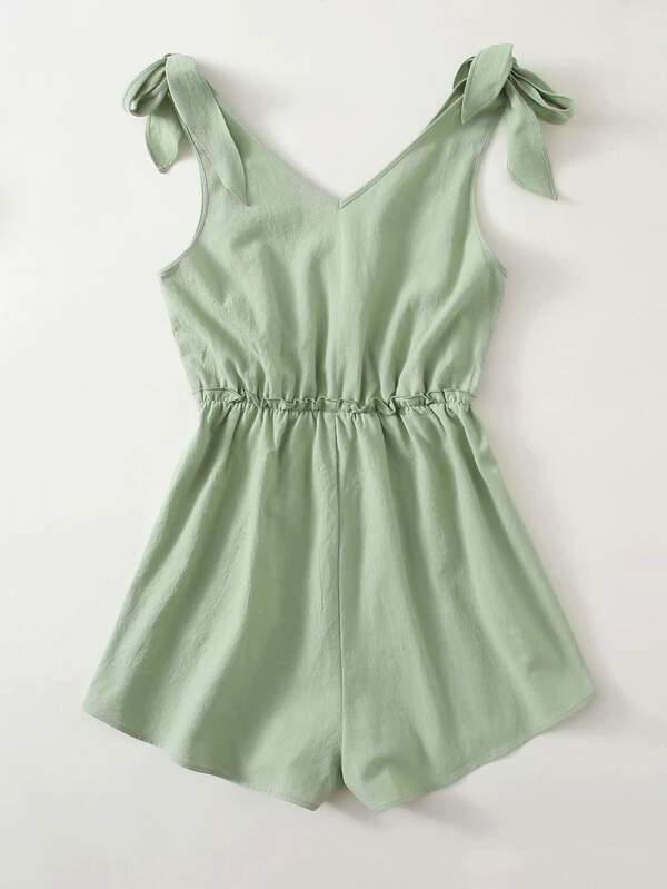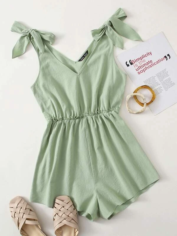 Knot Shoulder Frill Waist Romper