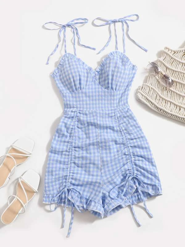 Ruched Bust Knot Shoulder Gingham