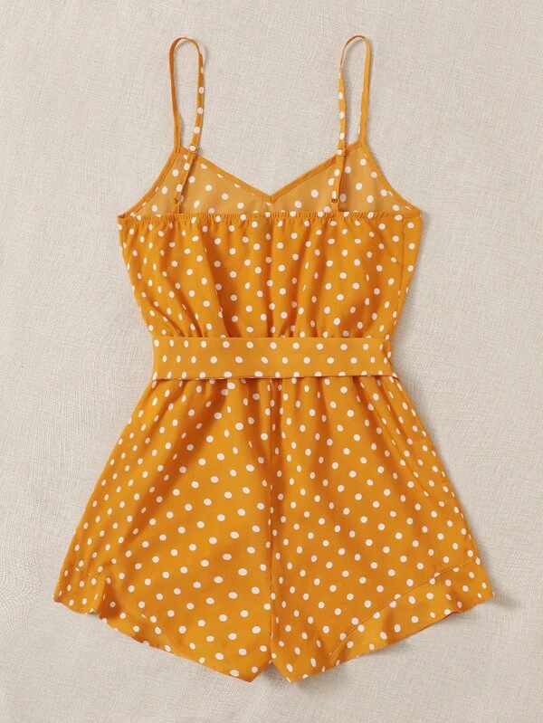Self Belted Polka Dot Cami Romper