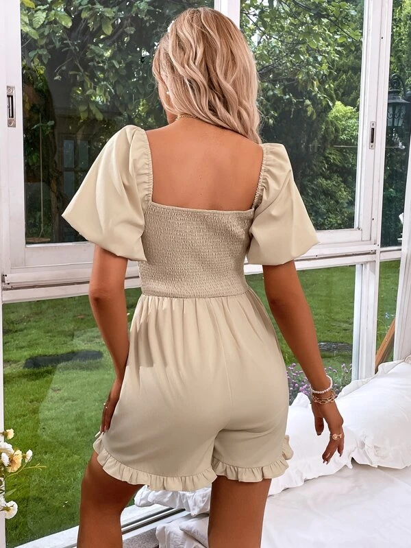 Ruffle Hem Puff Sleeve Romper