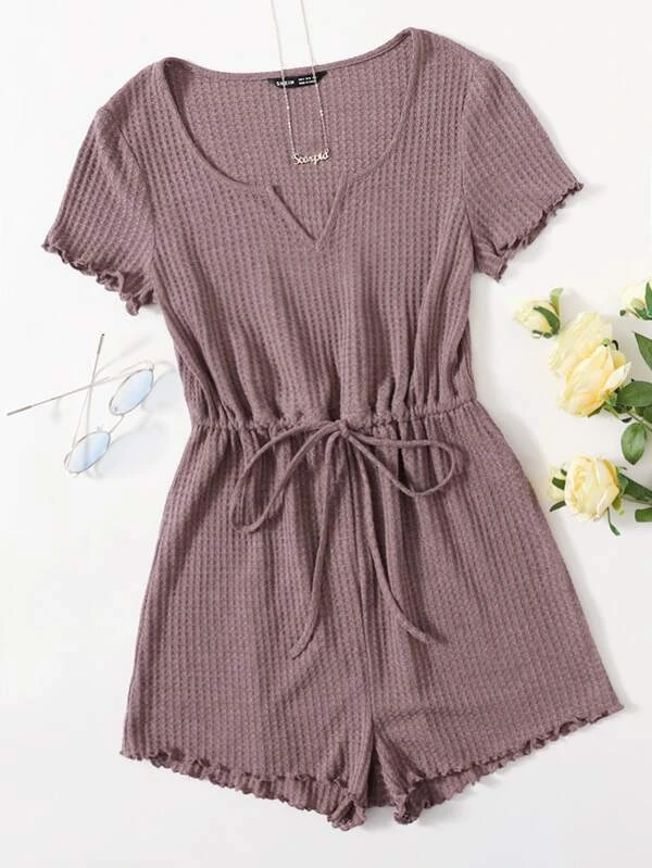 Notched Neck Lettuce Trim Romper