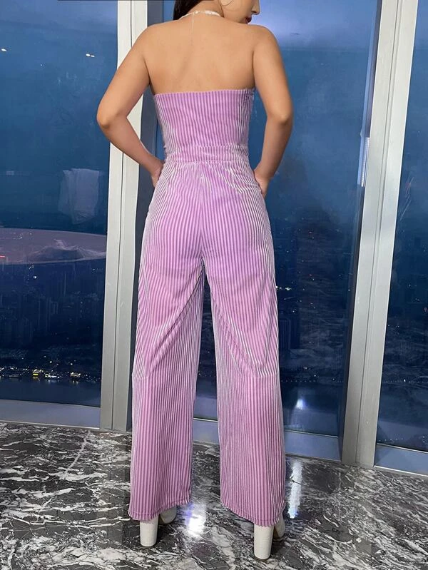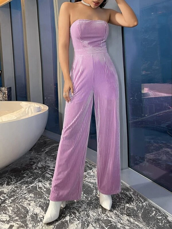Wide Leg Velvet Tube Jumpsuit