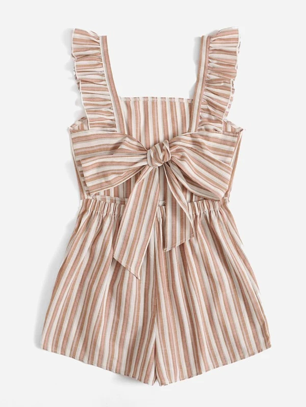 Striped Ruffle Tie Back Jumpsuit