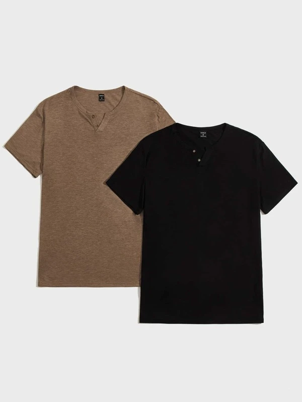 JJ 2pcs Button Half Placket T-Shirt