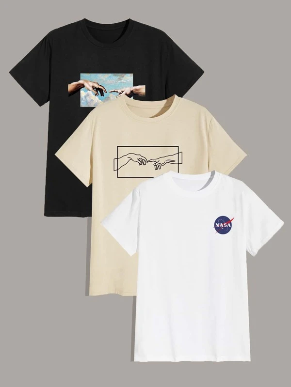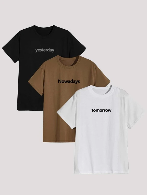 JJ 3pcs Letter And Figure Graphic Tee
