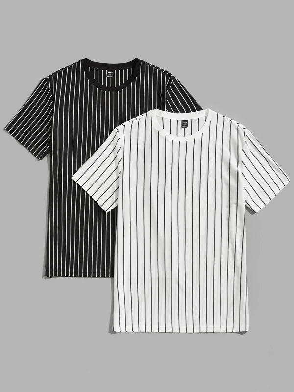 JJ Men 2pcs Striped Pattern Tee
