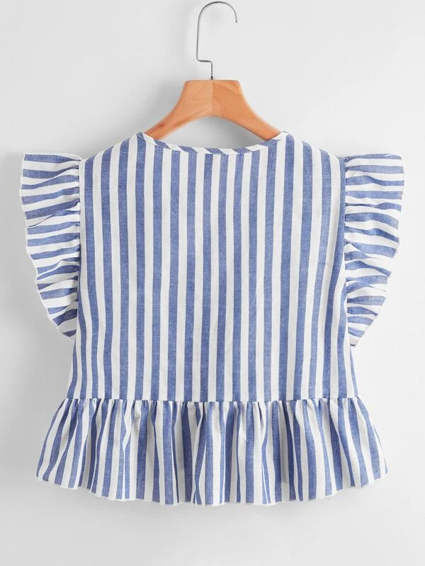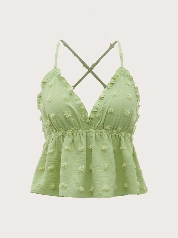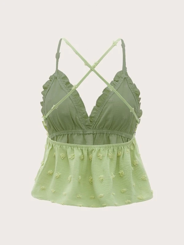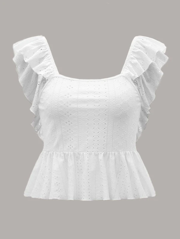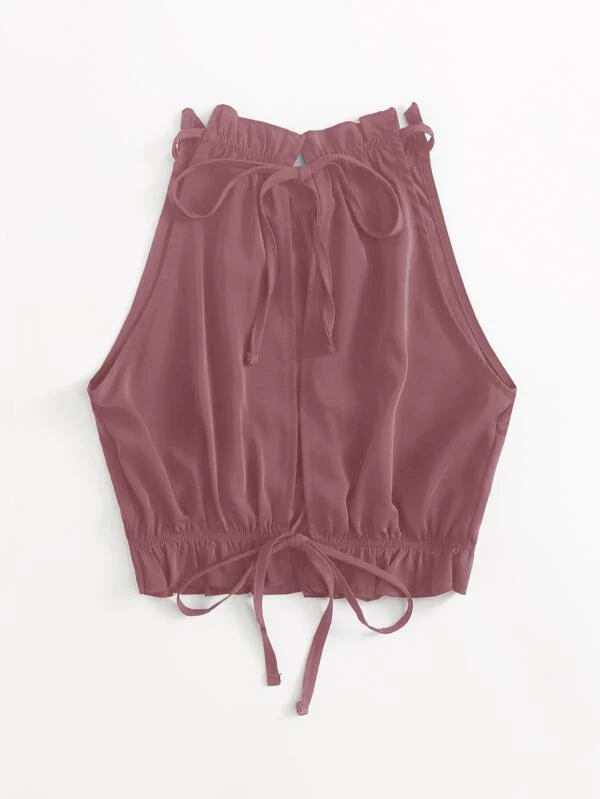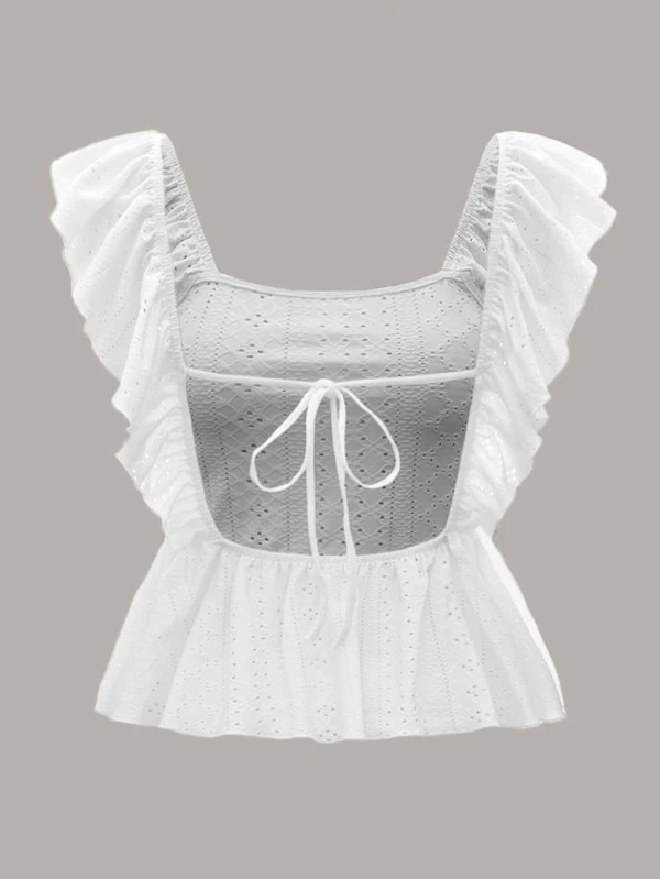 Embroidery Ruffle Trim Tie Backless Top