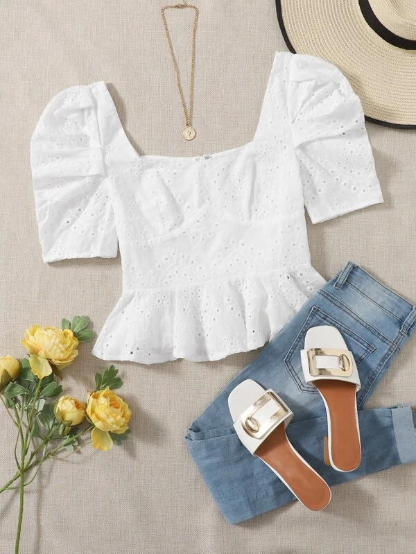 Sweetheart Neck Schiffy Peplum Top