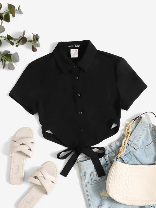 Backless Bandana Hem Crop Shirt