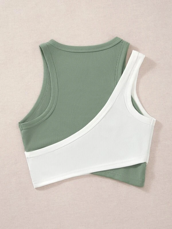Two Tone Cut Out Tank Top
