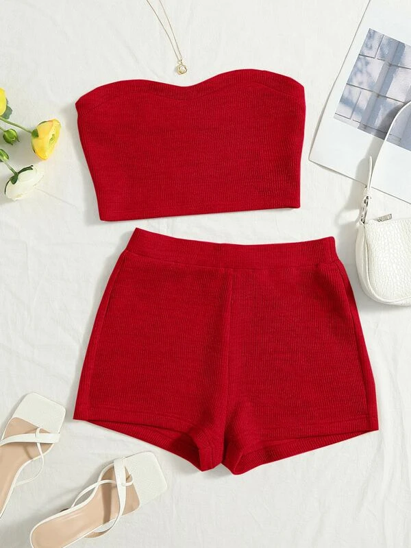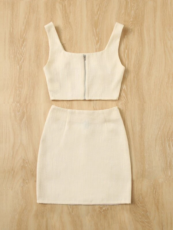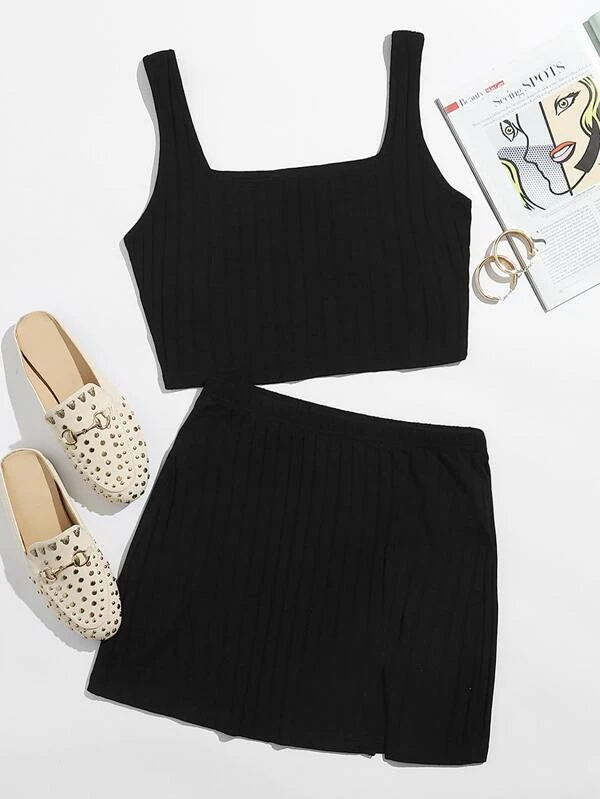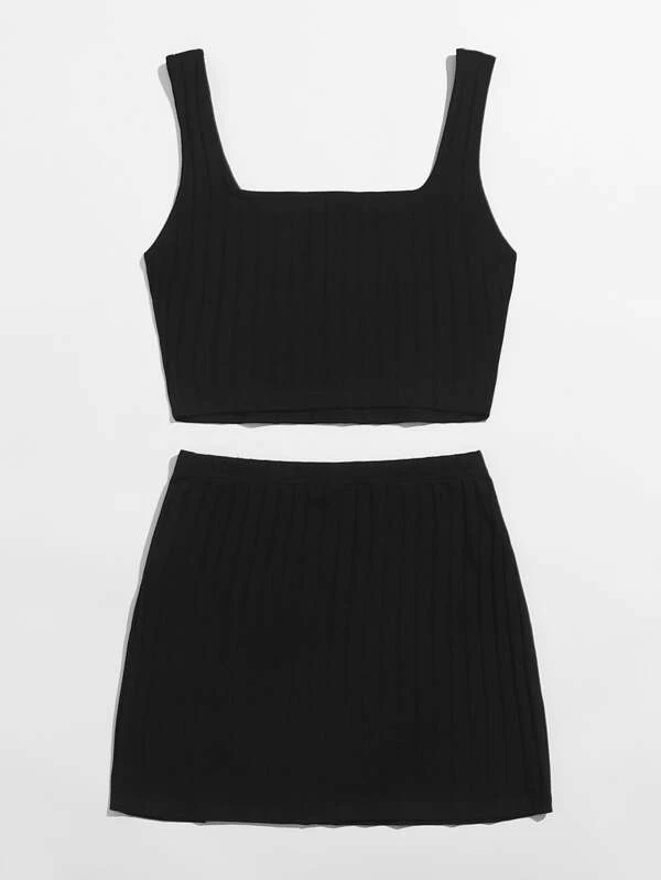Ribbed Cropped Tank Top & Mini Skirt Set