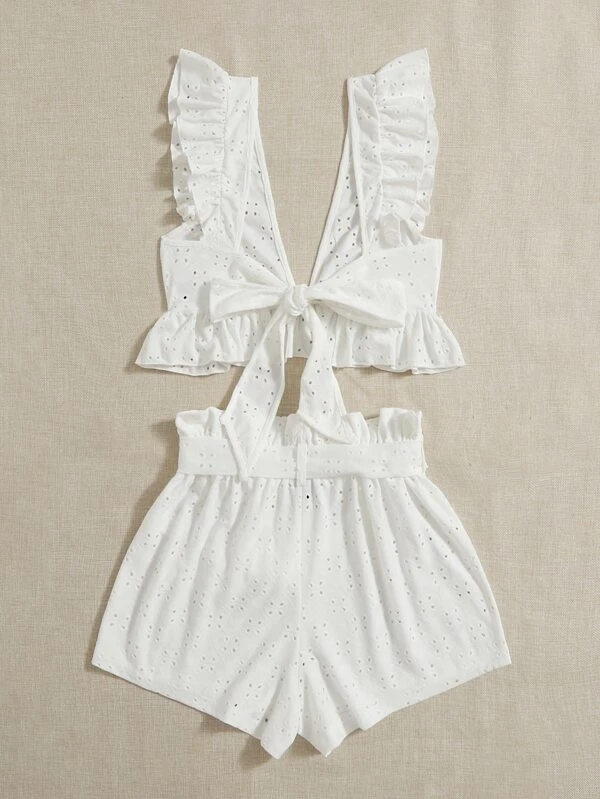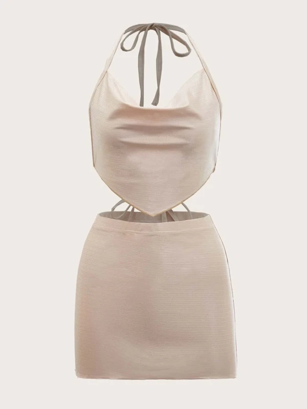 Backless Knot Hanky Hem Draped Halter Top & Skirt
