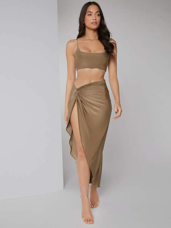 BAE Solid Crop Cami Top & Twist Waist Skirt