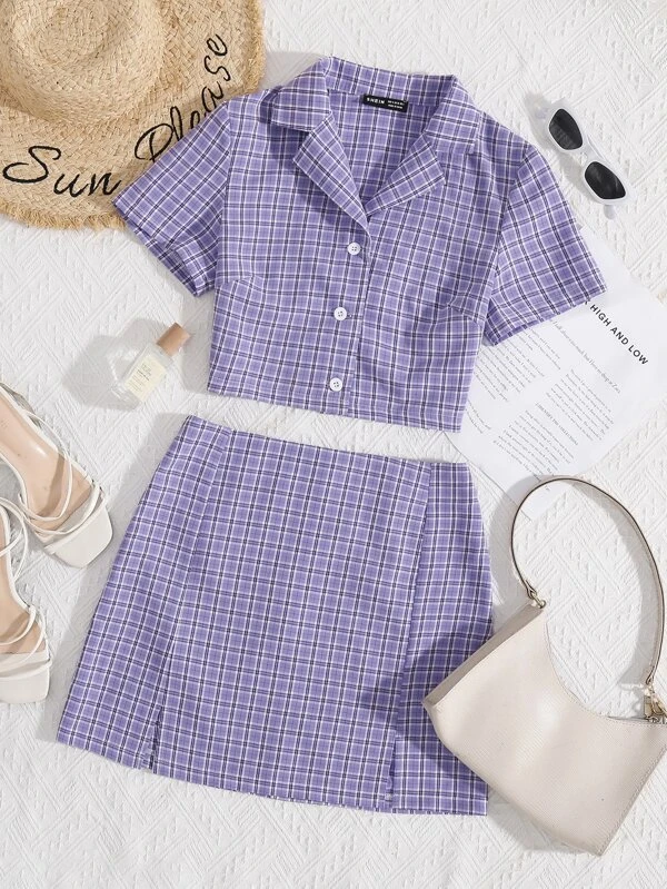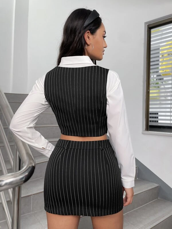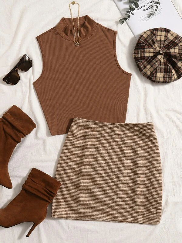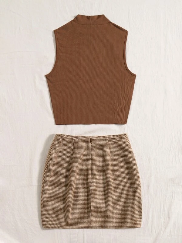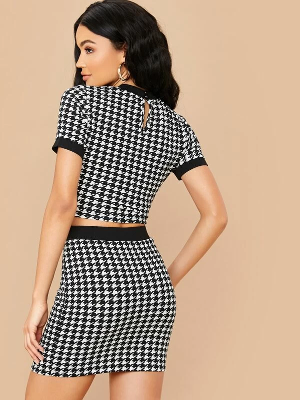 Button Front Houndstooth Crop Top & Bodycon Skirtt