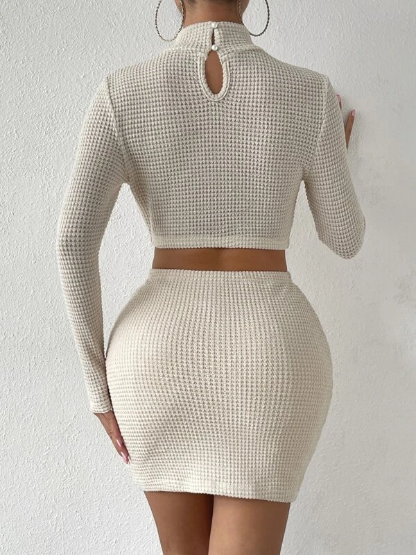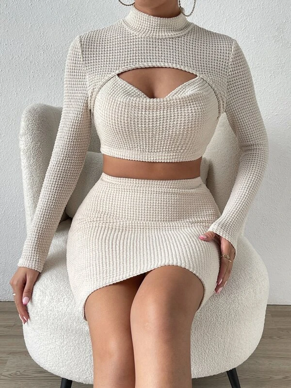 Mock Neck Cut Out Front Crop Top & Bodycon Skirt
